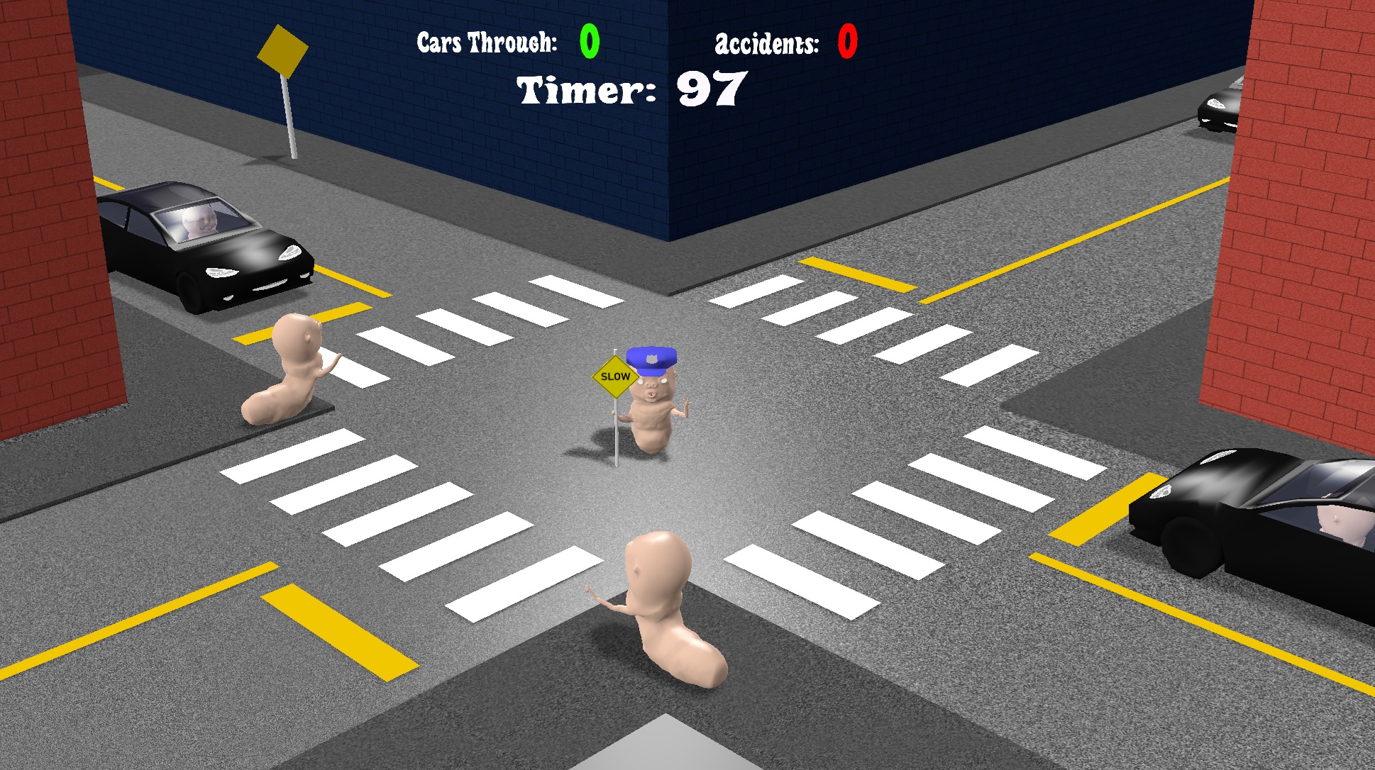 Controls: WSAD to face cars, signalling them to intersect.